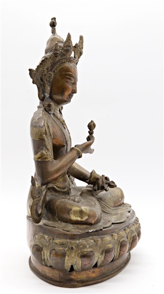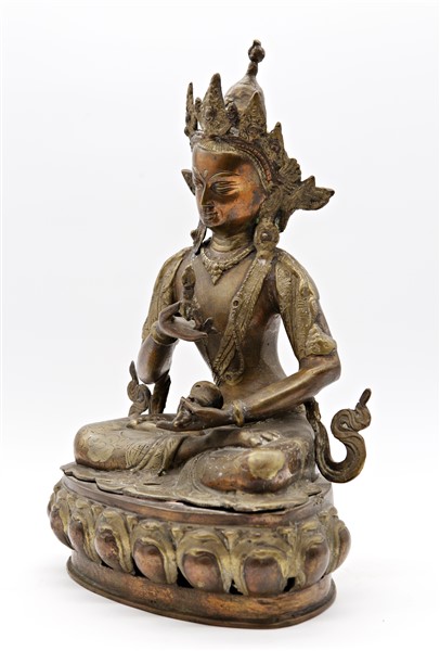 Lotto 604 | Scultura in rame raffigurante Tara Tibet, secolo XIX/XX (h cm 41)(difetti)