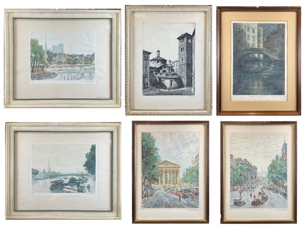 Lotto composto da sei stampe diversi autori e misure, raffiguranti "Paesaggi" i