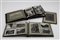 Cartone contenente due album fotografici di viaggi e numerosi souvenir con menù