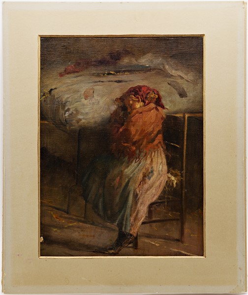 Ignoto di inizio secolo XX "Figura femminile in interno" oli su tela applicat