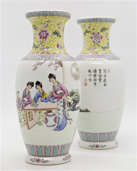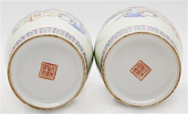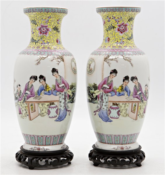 Lotto 652 | Coppia di vasi in porcellana policroma Famiglia Rosa raffiguranti figure femmin