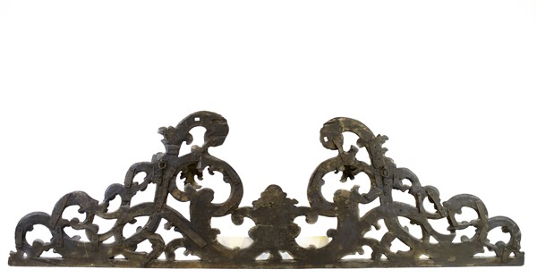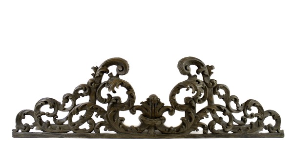 Grande fregio in legno intagliato e traforato a volute fogliacee. Secolo XVIII