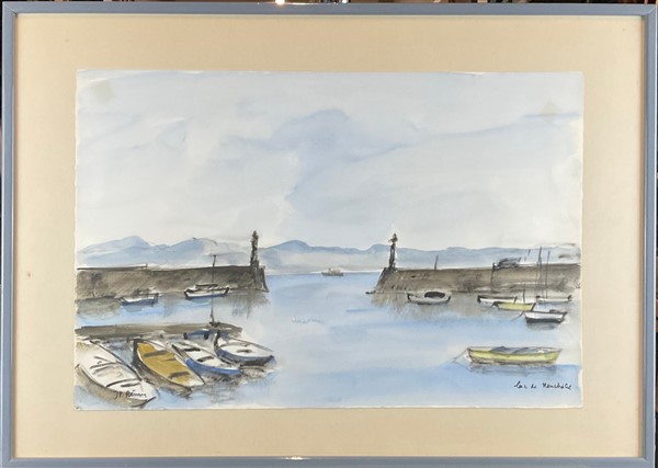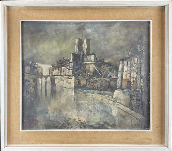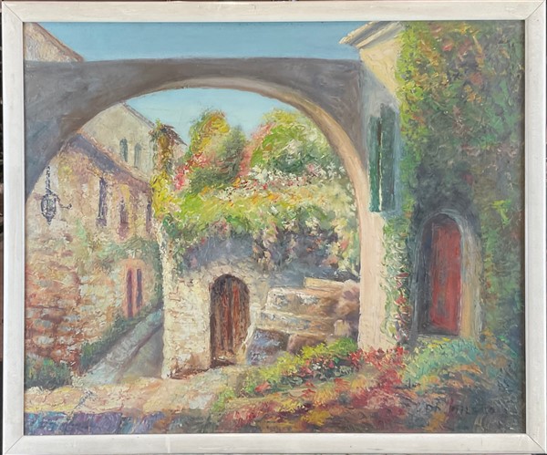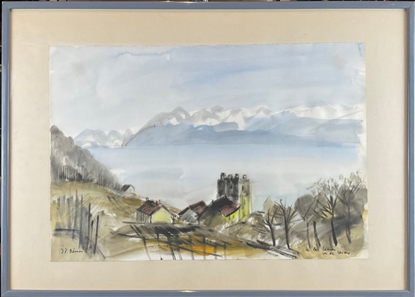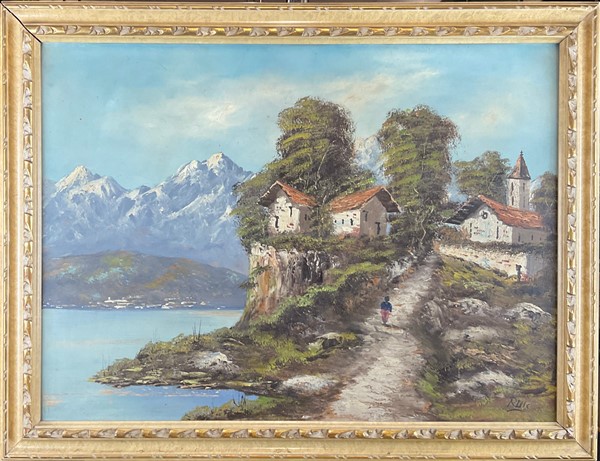 Lotto di cinque dipinti, ad olio e tecnica mista, raffiguranti paesaggi, autori e misure differenti, in cornici (cm max 51x71) (difetti)