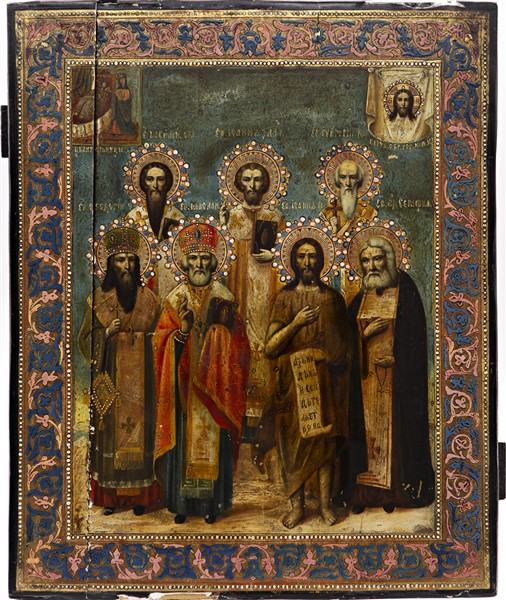 Arte russa, secolo XIX. "Sinassi di Santi" icona a tempera su tavola (cm 45x37)