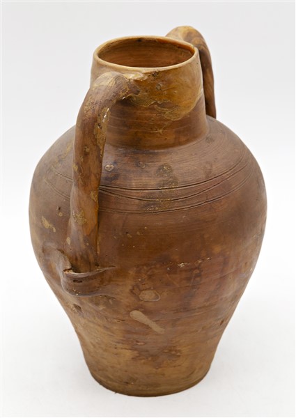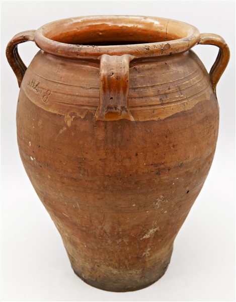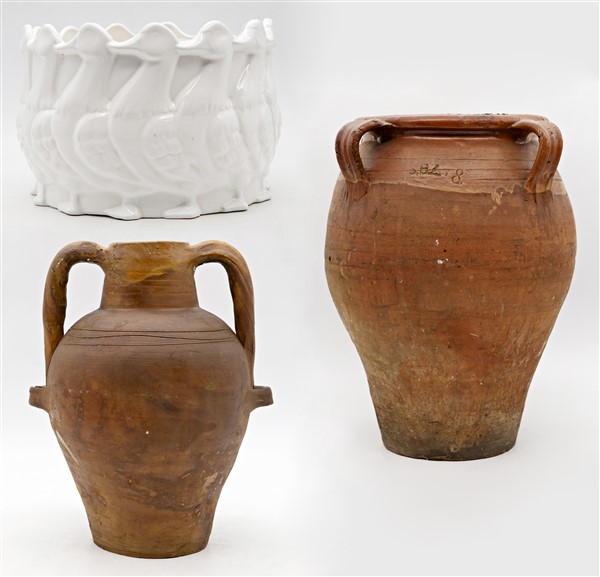Lotto composto da due orci in terracotta ed un cache-pot in porcellana smaltata