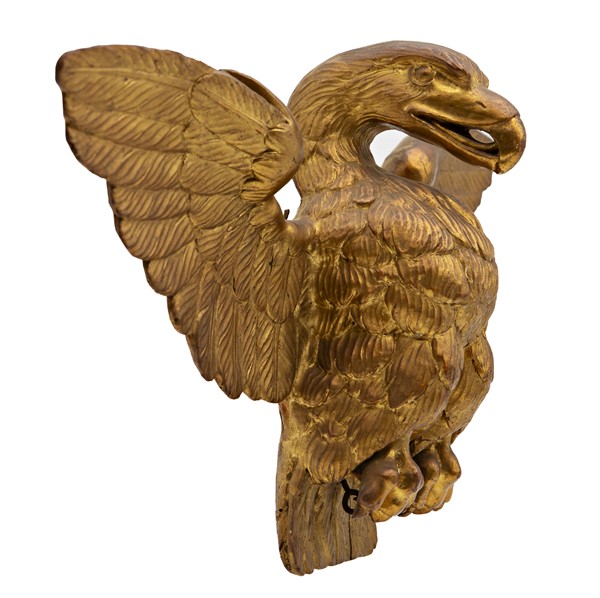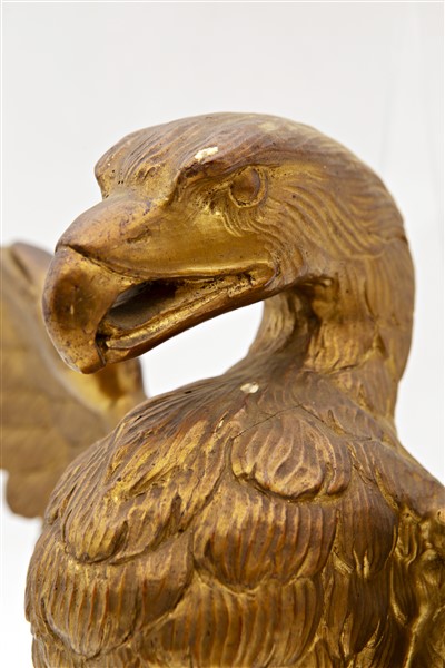 Arte del secolo XIX, aquila ad ali spiegate, scultura in legno intagliato e dor