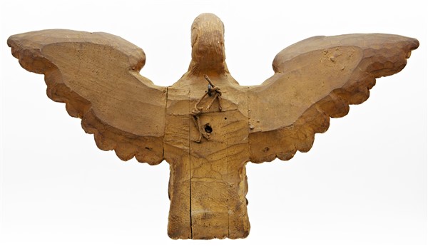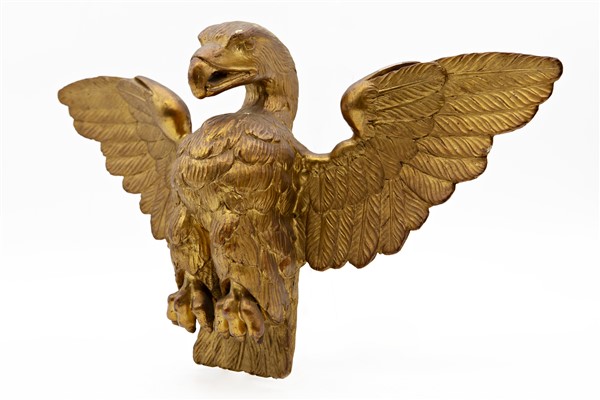 Arte del secolo XIX, aquila ad ali spiegate, scultura in legno intagliato e dorato (cm 53x30) (difetti)