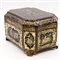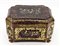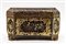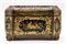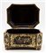 Cofanetto in legno laccato e decorato a figure orientali in oro su fondo nero c