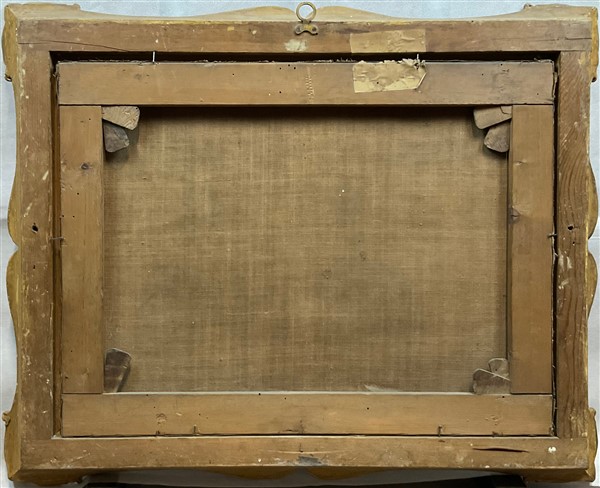 in cornice antica a vassoio in legno e pastiglia dorata (difetti)