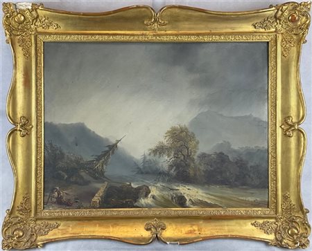 Scuola piemontese del secolo XIX "Il temporale" olio su tela (cm 45x60) in co