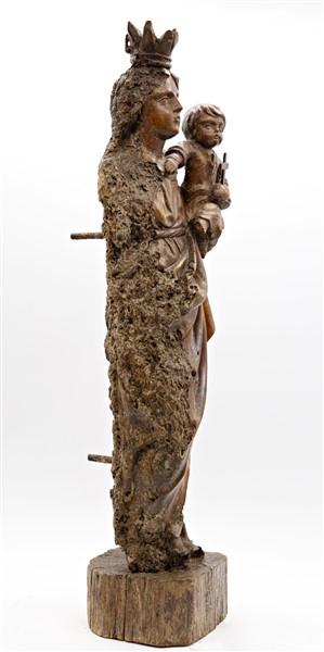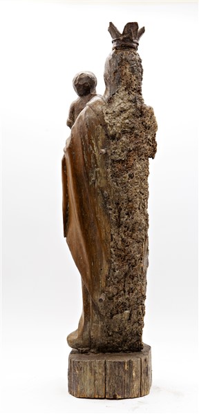 Scultore del secolo XVIII, Madonna con Bambino, legno intagliato con tracce di policromia (h cm 67) (difetti e mancanze)