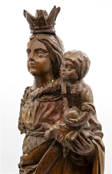Scultore del secolo XVIII, Madonna con Bambino, legno intagliato con tracce di