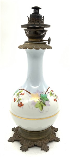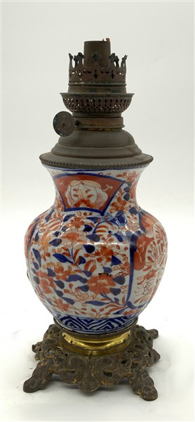 Lotto composto da tre diverse basi per lampada in porcellana con parti in metal