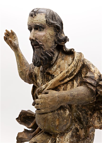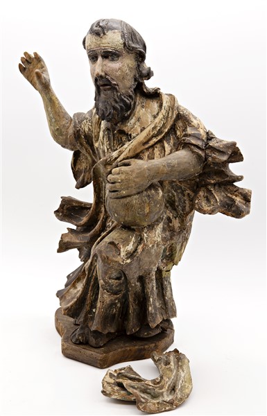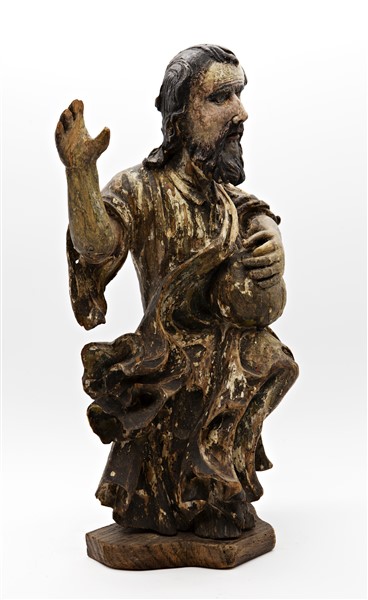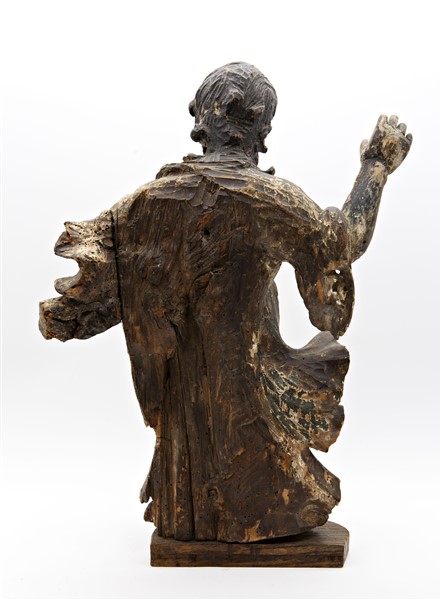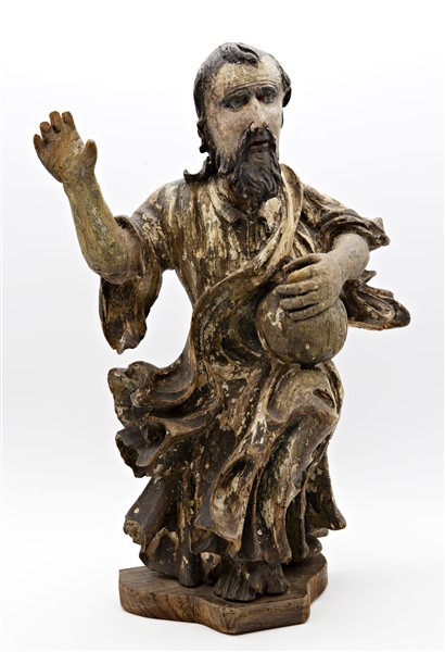 Scultore del secolo XVIII, Salvator Mundi, legno intagliato con tracce di policromia (h cm 53) (difetti e mancanze)