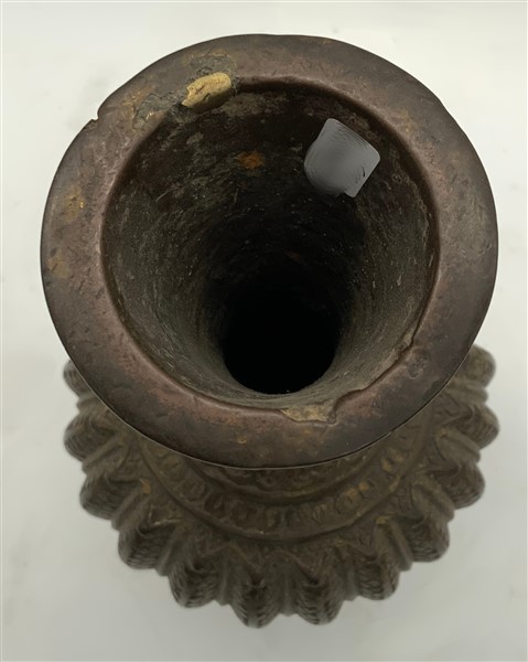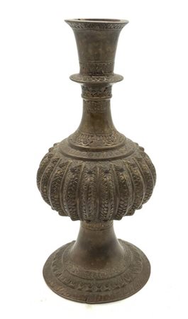 Vaso per narghilè in bronzo baccellato ed inciso, India, periodo Mughal, secolo XVII-XVIII (h cm 29) (difetti)