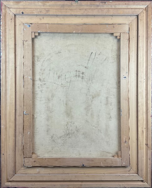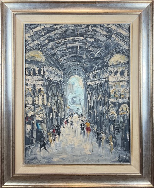 Firma indecifrata "Scorcio di città" olio su tela (cm 80x60) firmato in basso a sinistra e al retro
