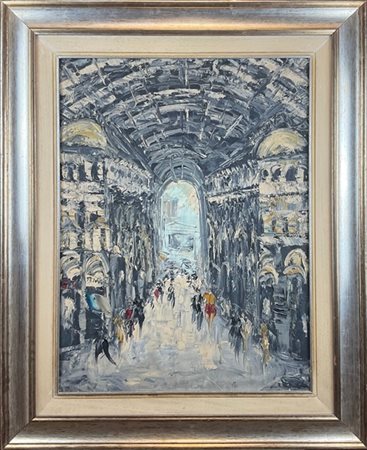 Firma indecifrata "Scorcio di città" olio su tela (cm 80x60) firmato in basso a
