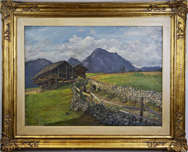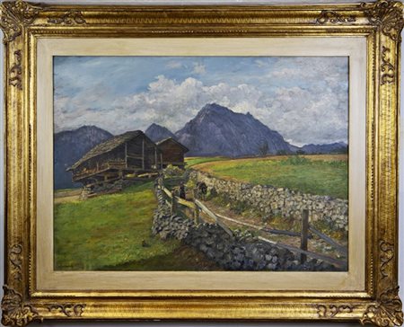 Anselmo Sacerdote "La strada dell'Alpe, Val D'Aosta" olio su tela (cm 58x80) fi