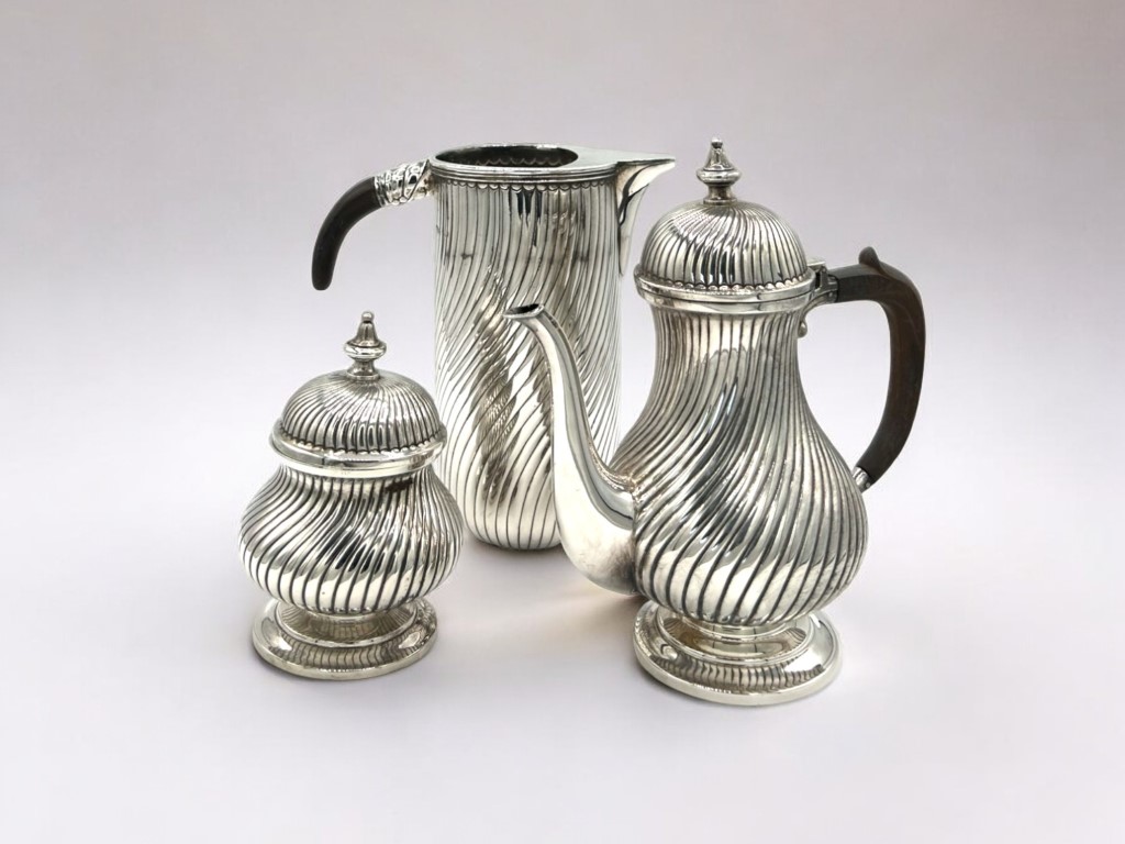 Bricco, caffettiera e zuccheriera in argento 800 Alessandria