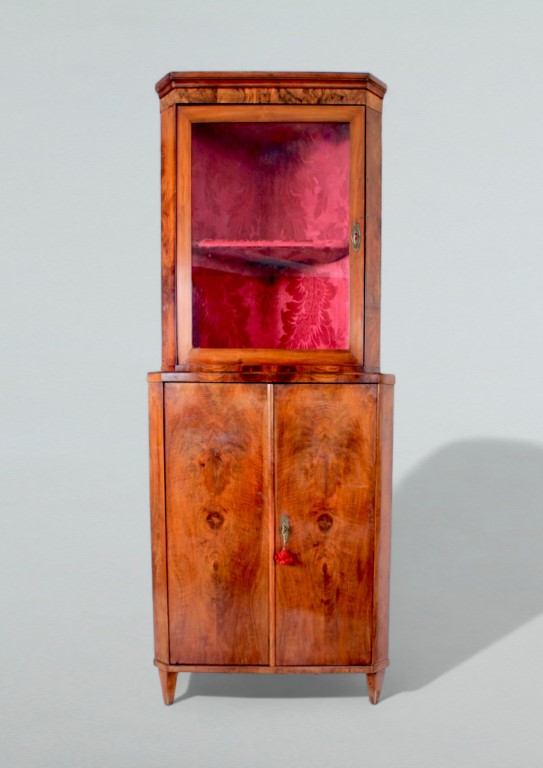 con corpo superiore a vetrina e due sportelli in quello inferiore, piedi troncopiramidali