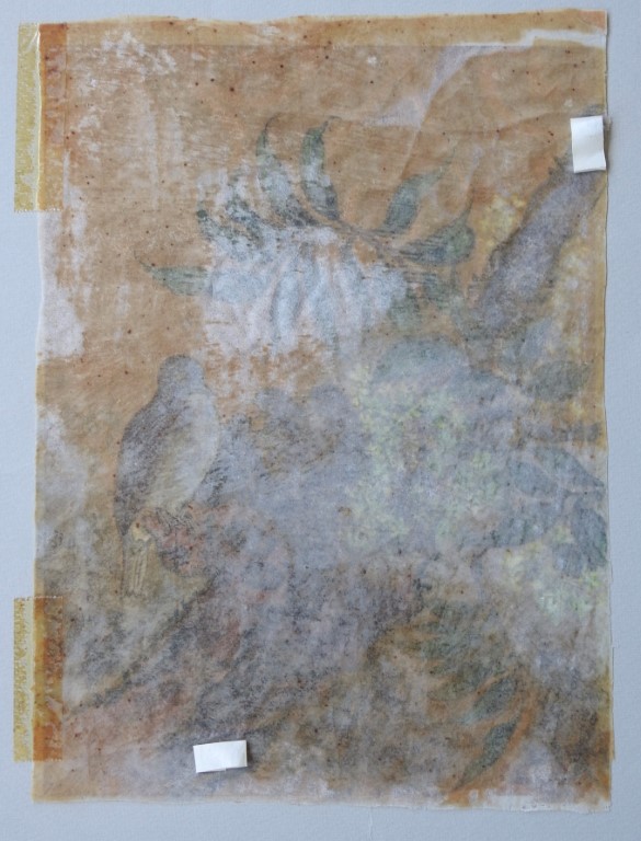 Opera parzialmente applicata su passe-partout di supporto, difetti e mancanze