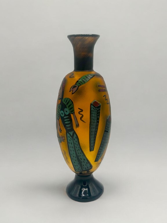 Vasetto portafiori in vetro ambra molato, Kostaboda unique