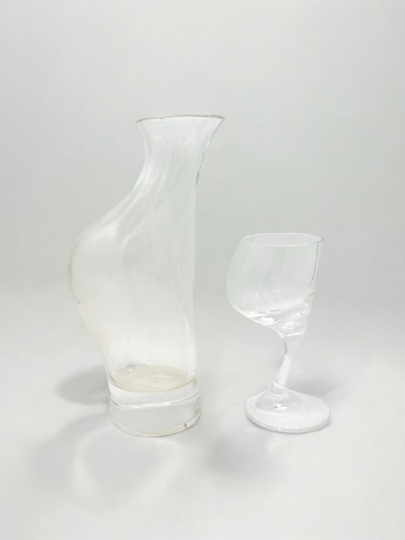 Bottiglia e bicchiere in vetro incolore