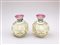 Due bottiglie da profumo in cristallo intagliato con tappi in argento e smalto
