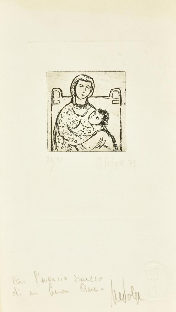 M. Volpe MADRE CON BAMBINO incisione su carta, battuta cm 6,5x6,5, su foglio...