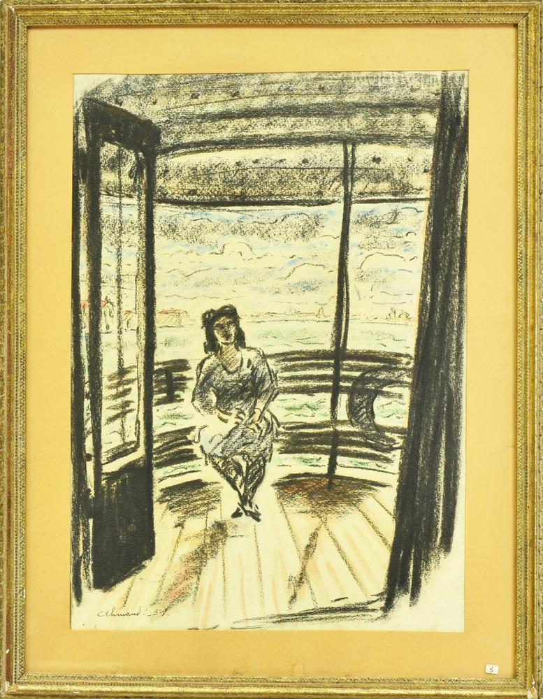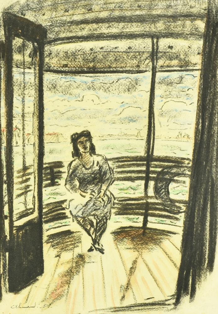 Lotto 17 | Enrico Allimandi DAL VAPORETTO AL LIDO tecnica mista su carta, cm 53x38 firma...