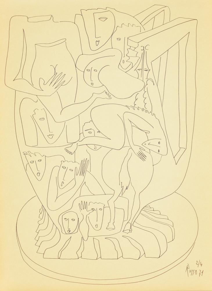 Russo CORPI INTRECCIATI pennarello su carta, cm 40x30 firma e data eseguito...