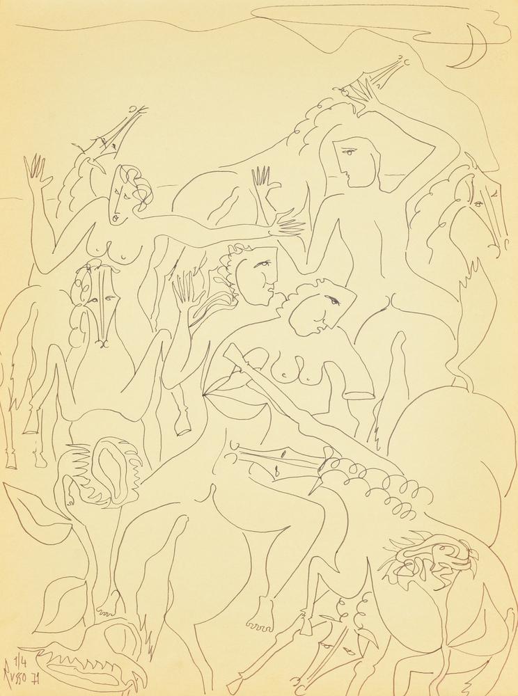 Lotto 24 | Russo LA BATTAGLIA pennarello su carta, cm 40x30 firma e data eseguito nel 1971