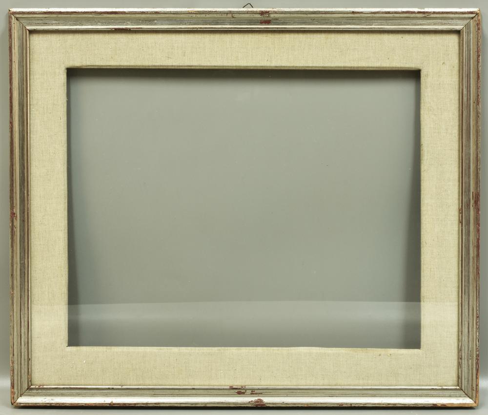 CORNICE IN LEGNO argentata, completa di vetro e passepartout cm 69,5x58,5,...