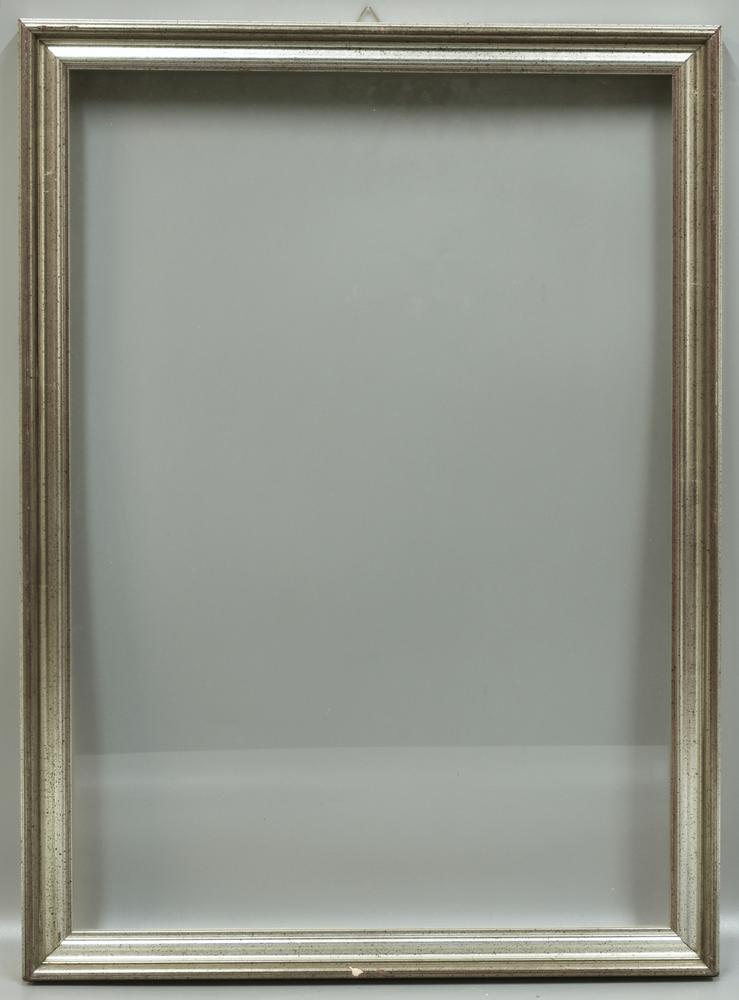 CORNICE IN LEGNO argentata, completa di vetro, cm 70,5x51,5, luce cm 63x43...