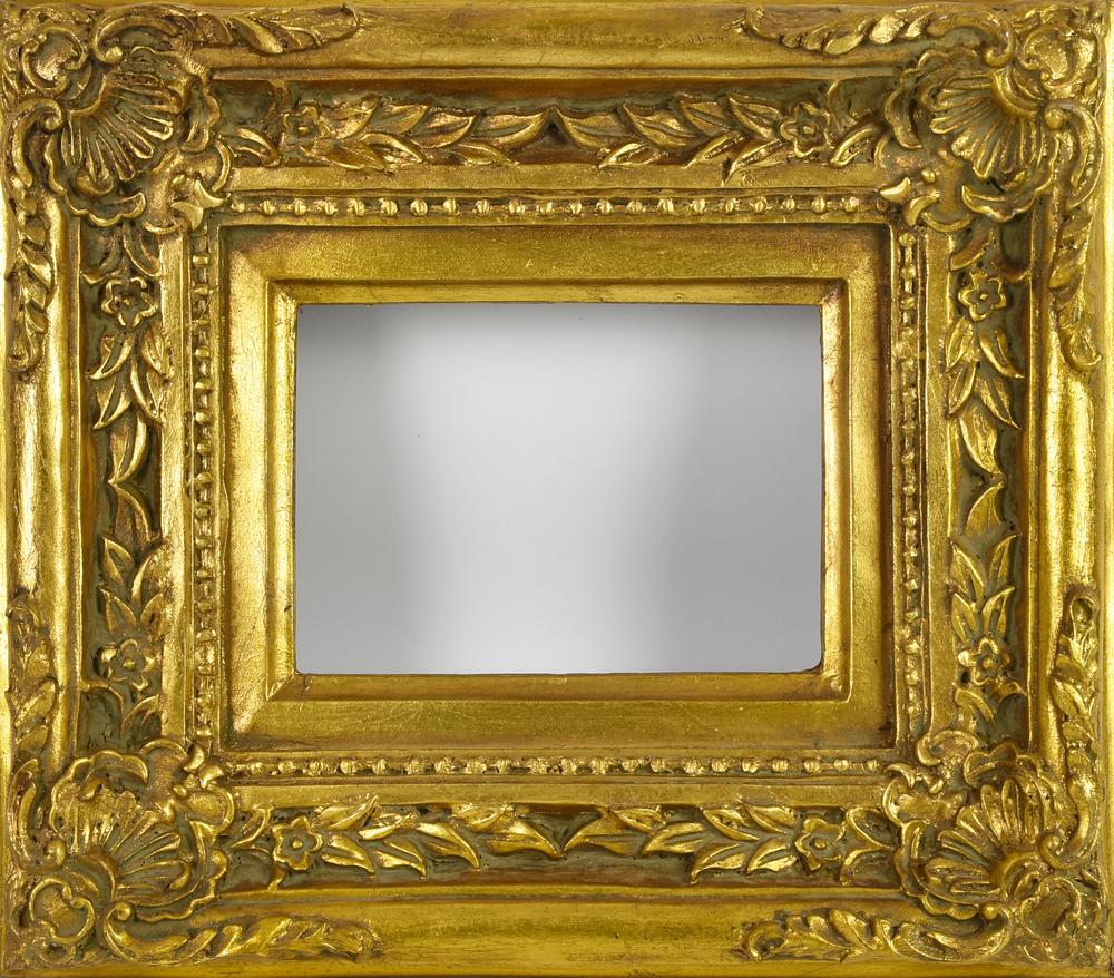 Lotto 106 | CORNICE in legno dorato e decorato, luce cm 11x16, cm tot 28x32,5 difetti