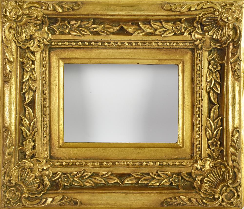 Lotto 107 | CORNICE in legno dorato e decorato, luce cm 11x16, cm tot 28x32,5 difetti