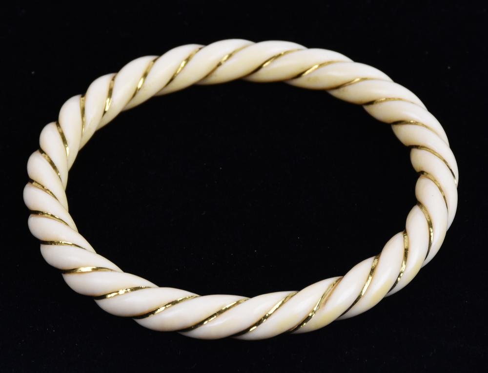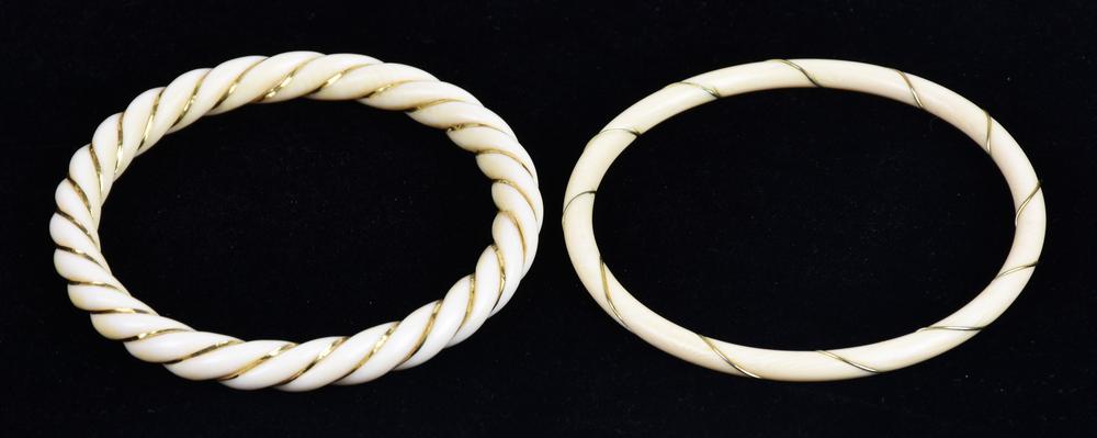 COPPIA DI BRACCIALI IN AVORIOLINAE FILAMENTI DI METALLO DORATO Italia,...