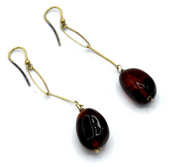 COPPIA DI ORECCHINI PENDENTI CON AMBRA
