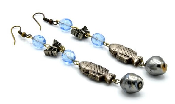 Lotto 74 | ORECCHINI PENDENTI CON PICCOLI PESCI lunghezza cm 9