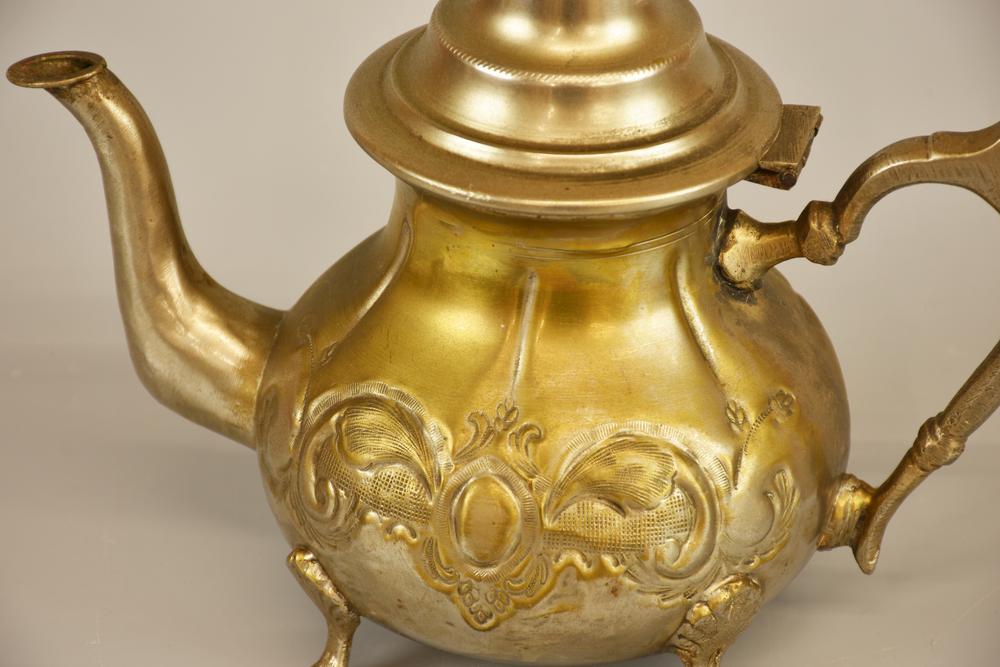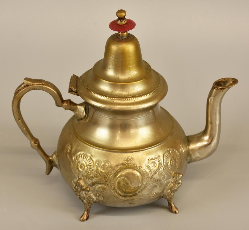COPPIA DI TEIERE in rame nichelato, decorati con motivi della cultura araba h...