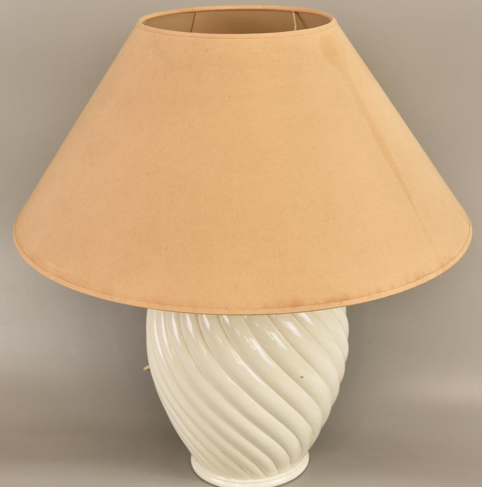Lotto 89 | LAMPADA DA TAVOLO in ceramica bianca modellata a coste, cappello non...