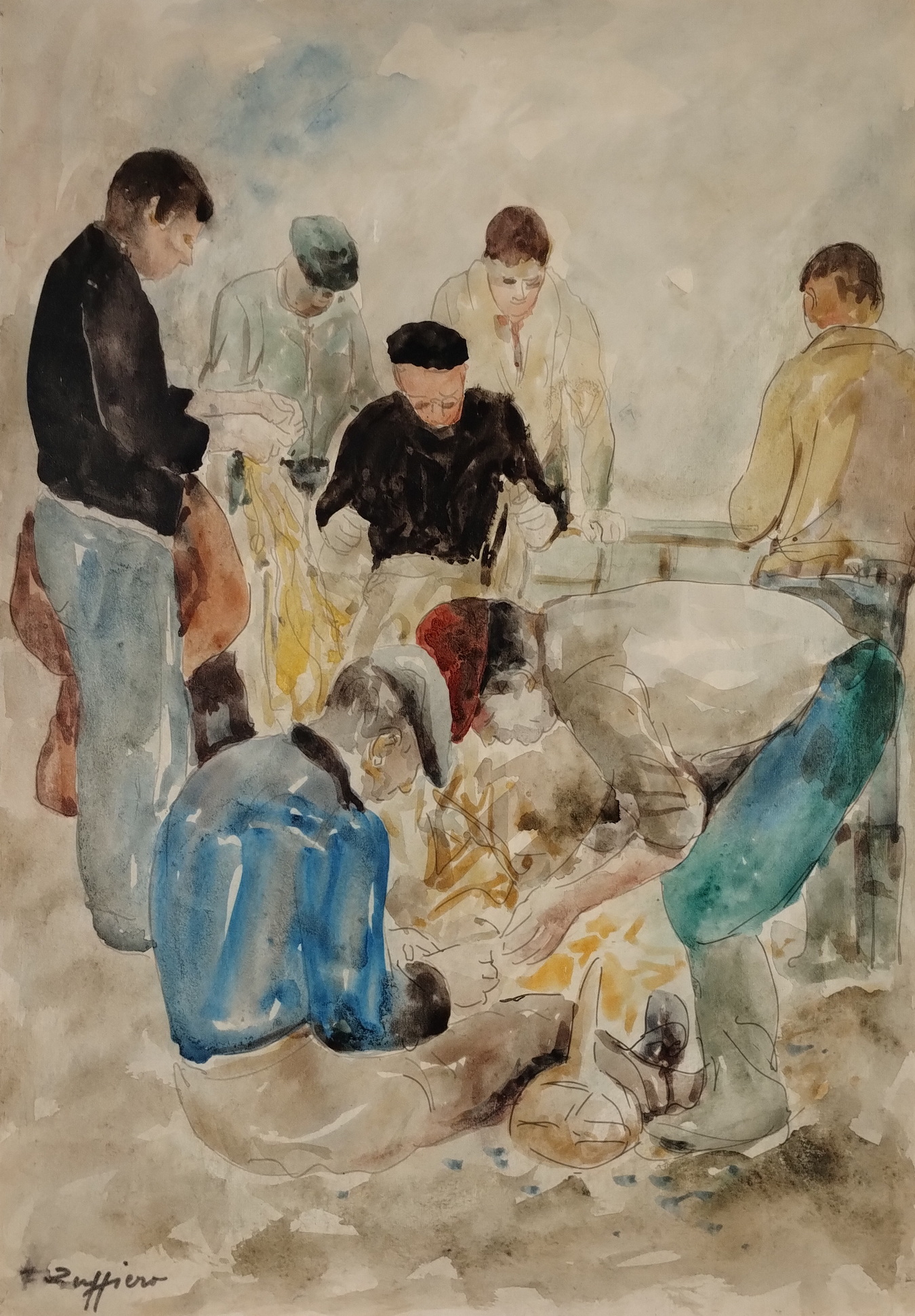 RUGGIERO FRANCO Malvito (Cs) 1962 Pescatori Mista su cartoncino 50,00x35,00...