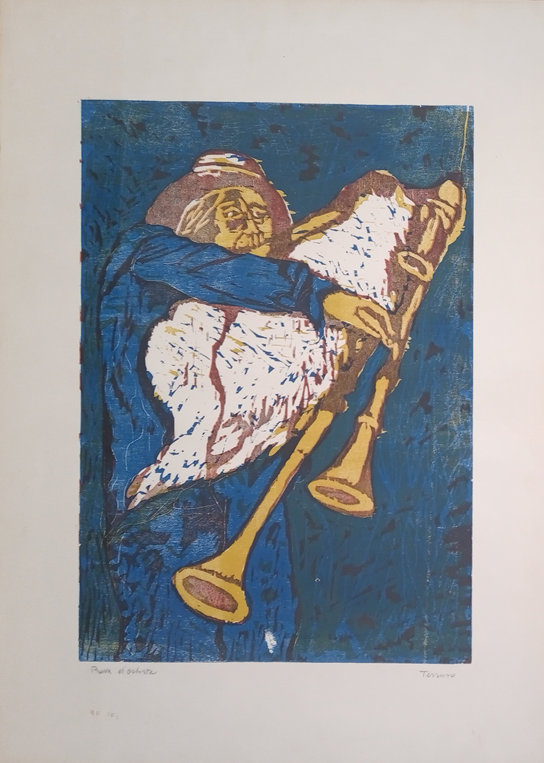 TERRUSO SAVERIO Monreale (Pa) 1939 Suonatore di cornamuse Litografia su carta...