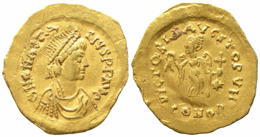 Lotto 8 | Anastasius I (491-518), Tremissis; AV (1,48 g; 15,8 mm)