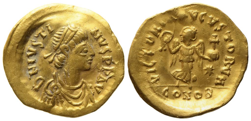 Lotto 20 | Justin I (518-527), Tremissis; AV (1,42 g; 15,0 mm)