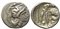 Head of Athena r., wearing Corinthian helmet pushed back on head, bowl decorated with Scylla hurling stone; [EY] before; Rv. AΠOꓥ-ΗΕPΑΚΛ[ΗΙΩΝ], Heracles facing r., strangling the Nemean lion; club in l. field, skyphos between legs. HN Italy 1378. Extremely fine. Refined style.