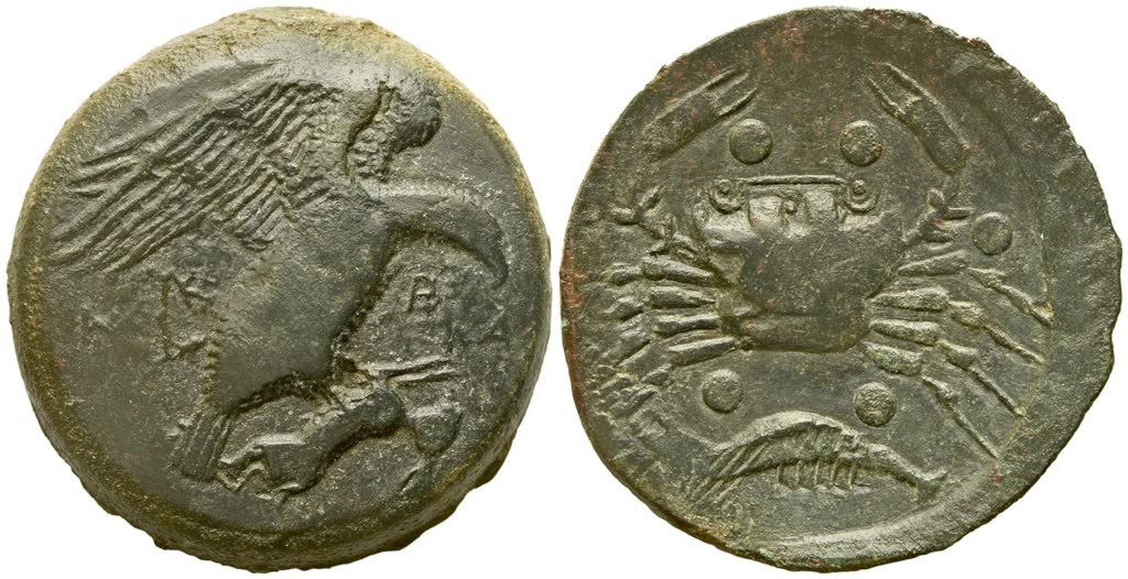 Sicily, Akragas (c. 420-406 BC), Hemilitron; Æ (15,42 g; 25,8 mm)