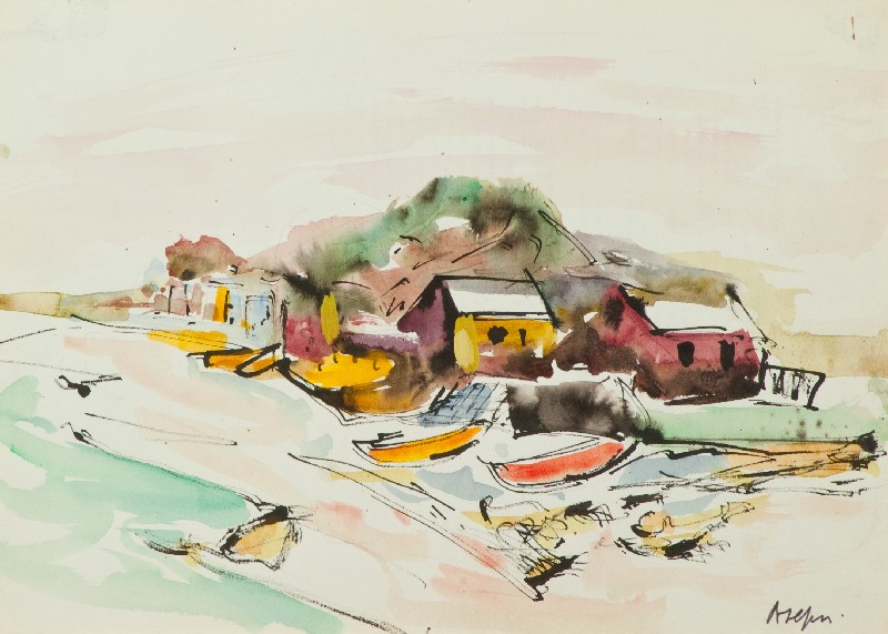 Attilio Alfieri (Loreto (An) 1904 - Milano 1992) PAESAGGIO Tecnica mista su cartoncino, cm. 33x46 Firmato in basso a destra.