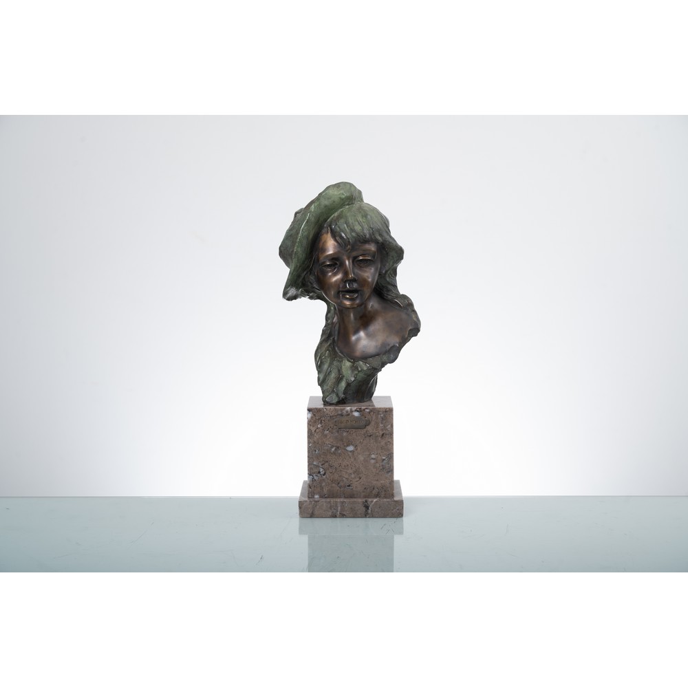 NICO VENZO, Ragazza con cappello, Scultura in bronzo