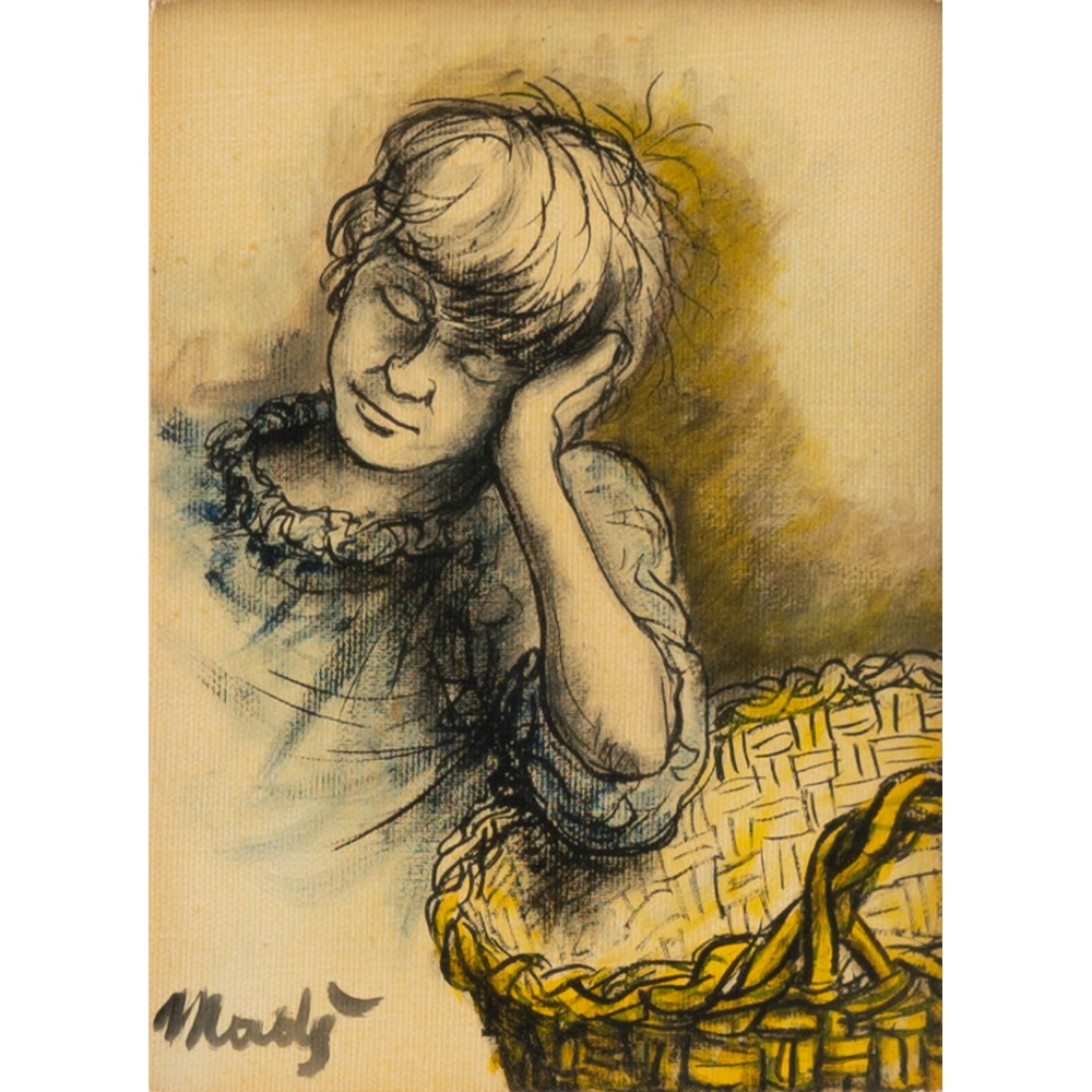 PIPPO MADÈ, Ragazzo con cesta, Olio su cartone telato